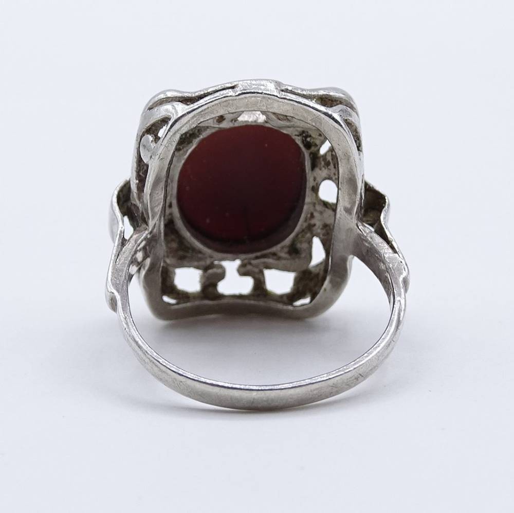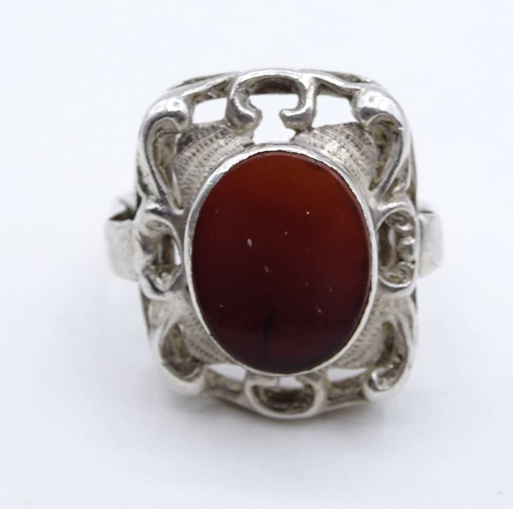 Alter Silberring, 835/000, mit ovaler rotbrauner Platte, RG 64, 8 gr., mit Alters- und Tragespuren [1]