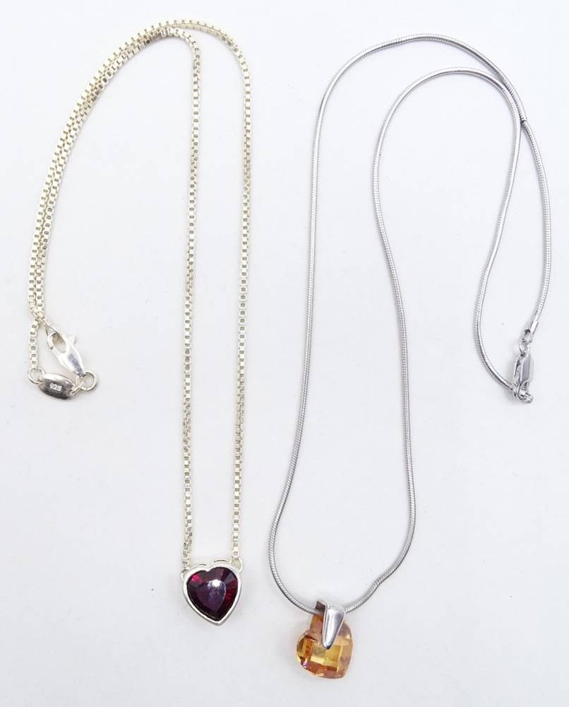 Losnummer 5200 - Collier und Kette mit Herzanhängern aus rotem bzw. orangefarbenem Schmuckstein, 925er-Silber, 1 x Esprit, L. 44, Schlangenkette an einer Stelle geknickt