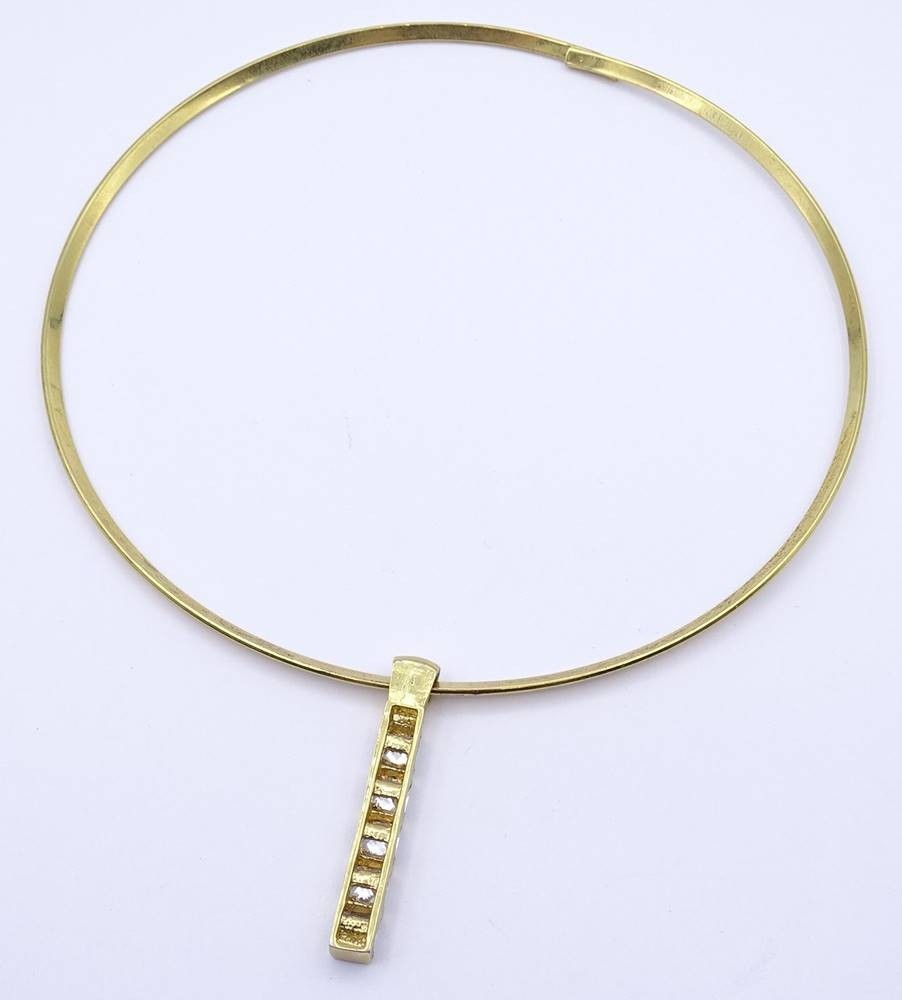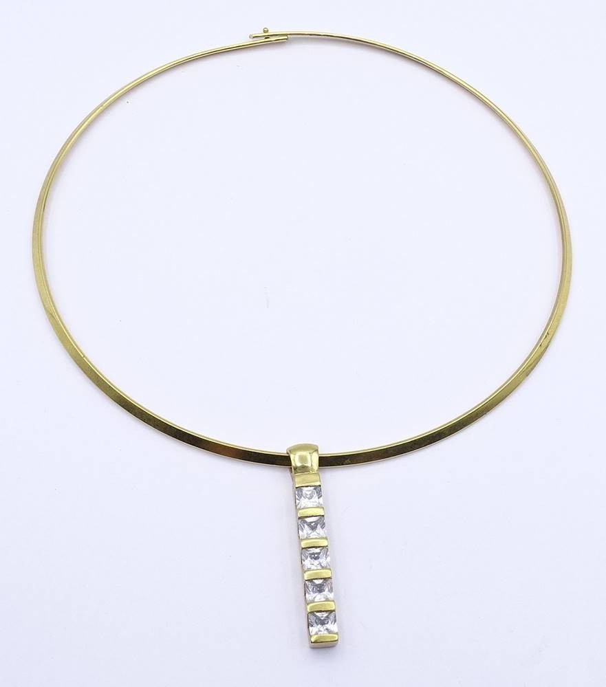 Halsreif mit Anhänger, Metall, goldfarben, Anhänger mit klaren Steinen [1]