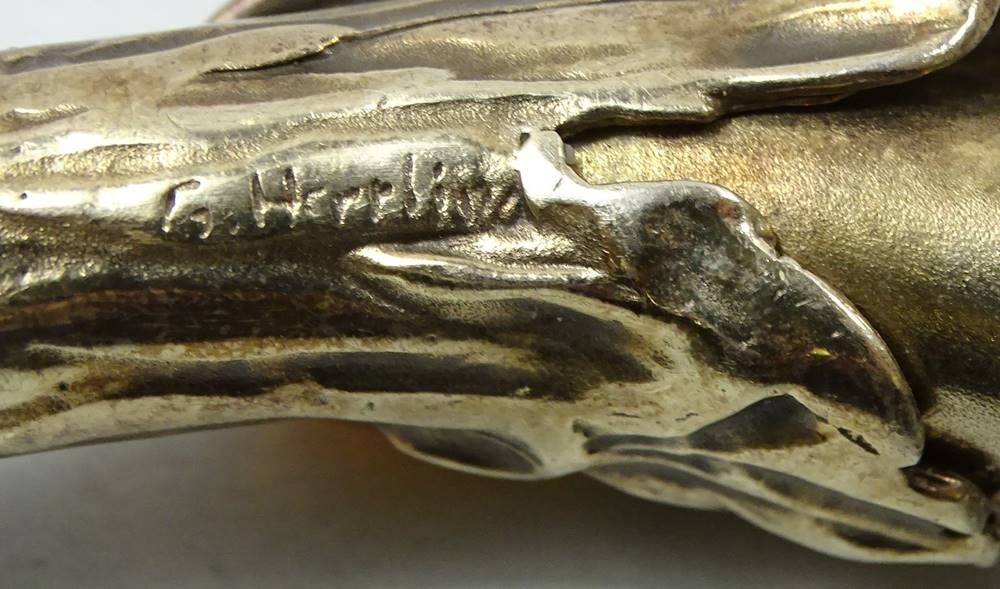 Losnummer 5024 - Kautschuk-Halsband mit Designerschließe aus 925er-Silber und Bernstein, gestempelt "G. Herrling"?, Ø 16 cm, L. Silberelement: 5,5 cm