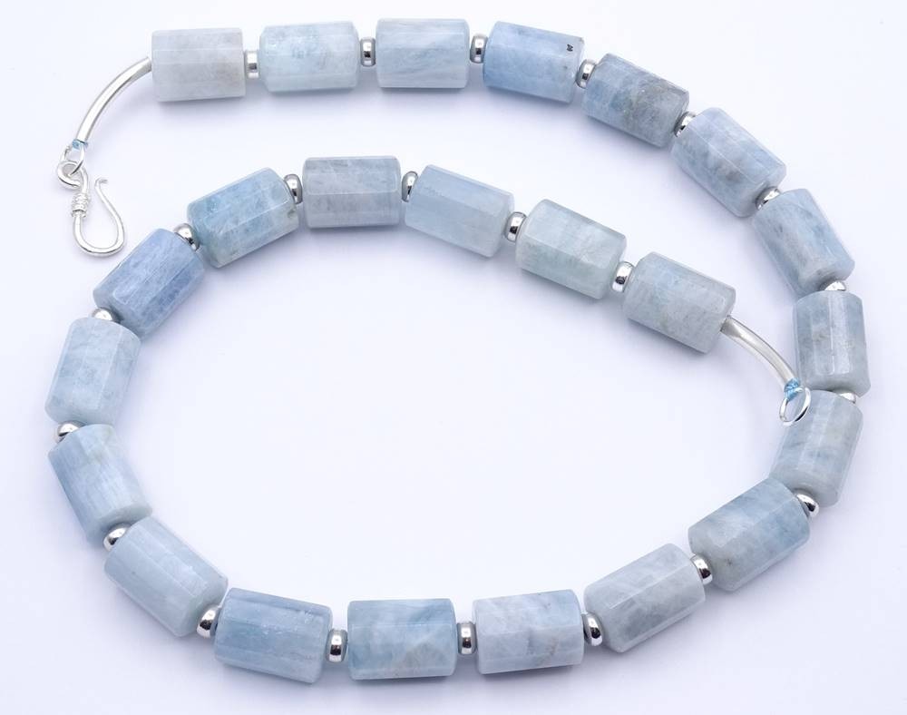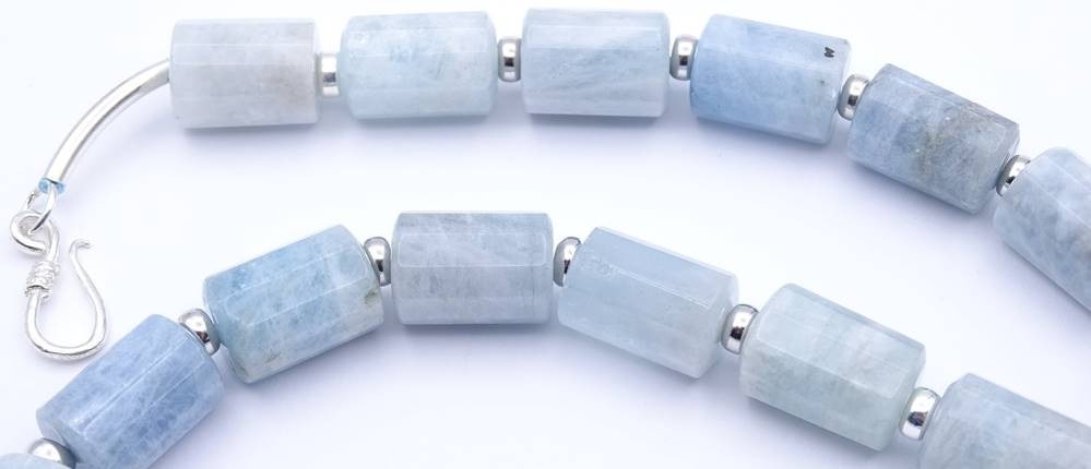 Opake Aquamarin Halskette mit Silber Verschluss, L. 52cm, 111,0g. [1]