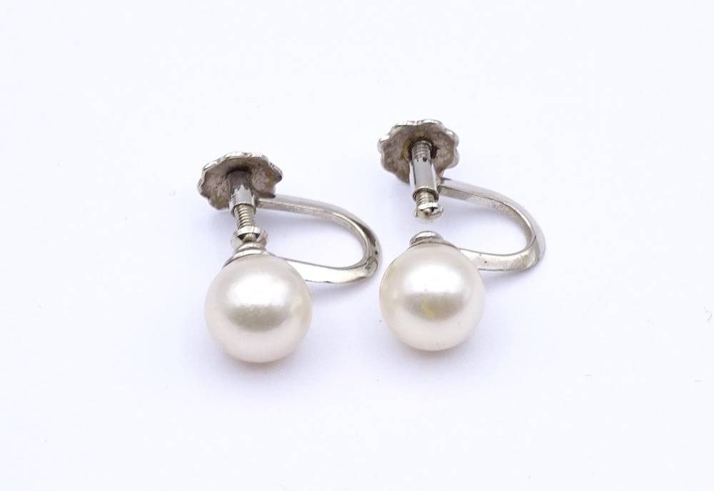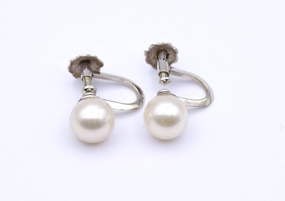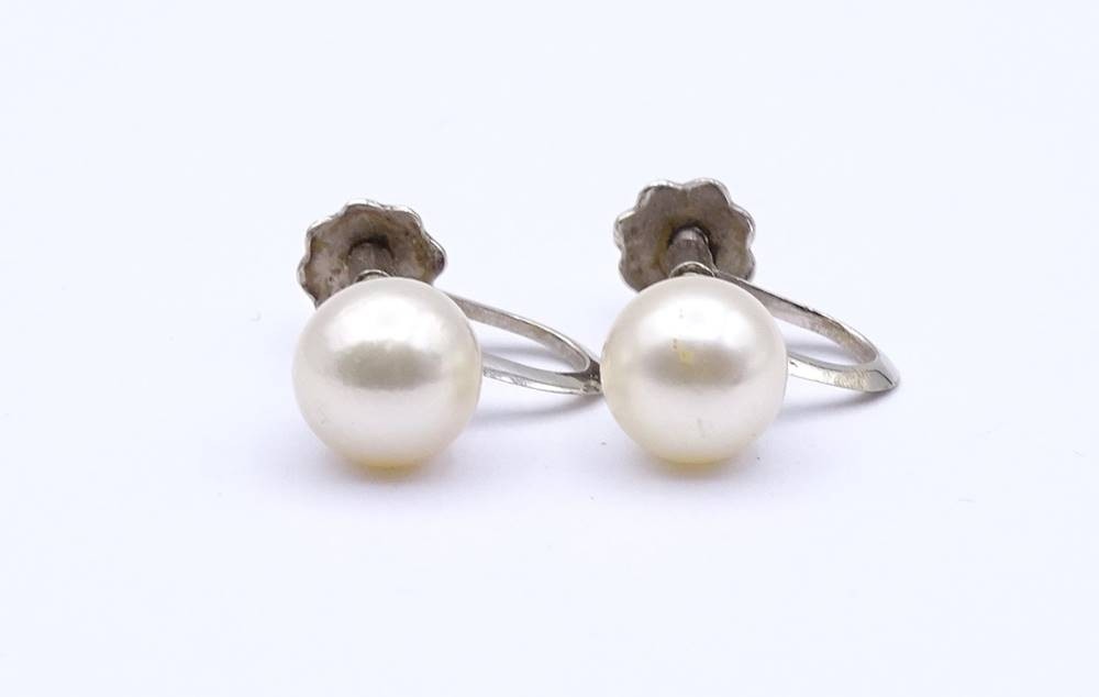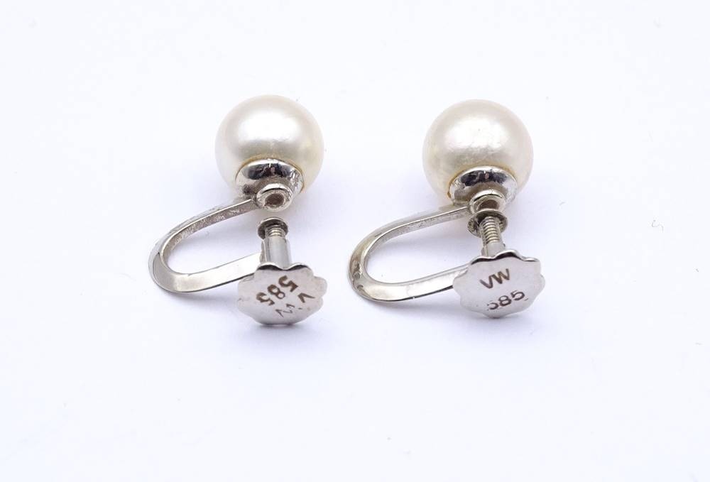Perlen Schraub Ohrringe 0.585 Weißgold, Perlen D. 7,6mm, zus. 2,8g. [1]