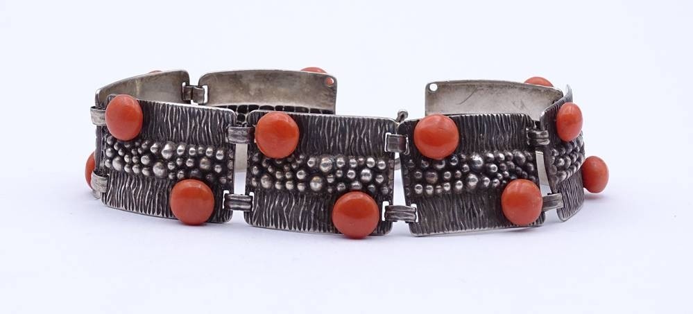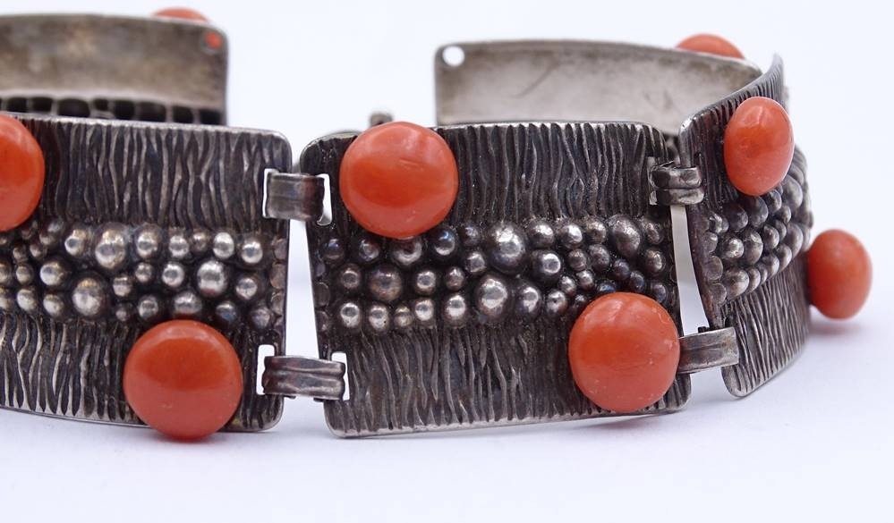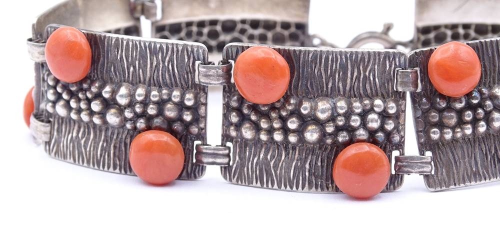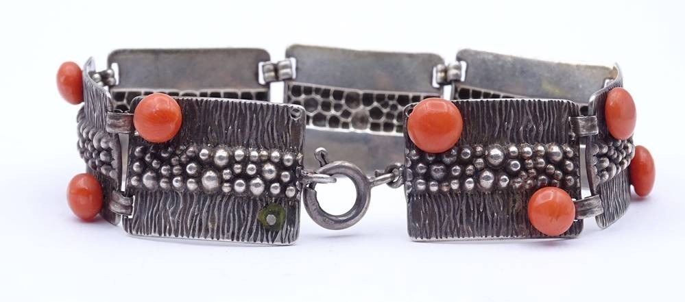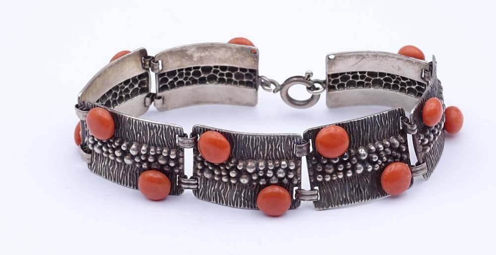 Silber Armband mit Korallen, Silber 0.925, L. 21cm, 34,5g. [1]