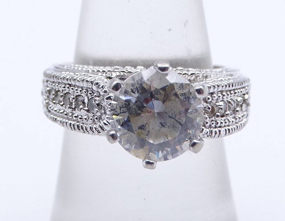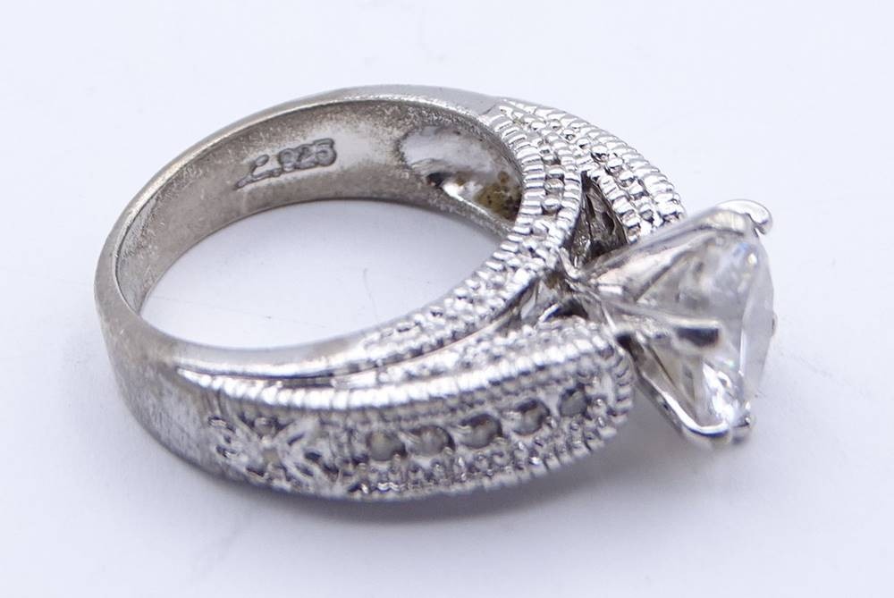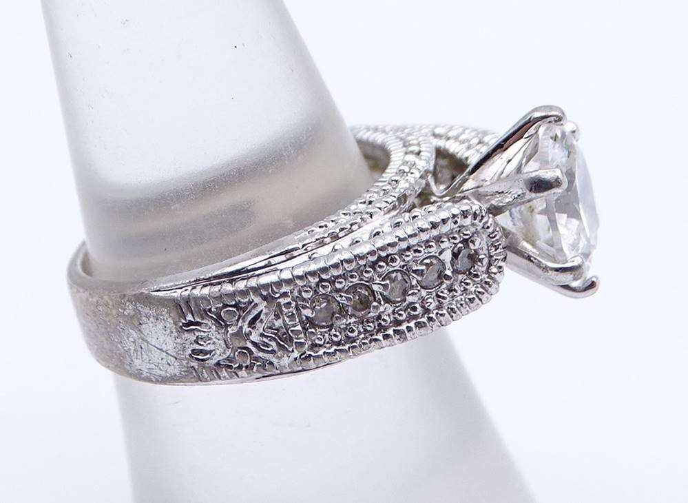 Silberring, 925/000, mit großem klaren Stein und weiteren kleinen Steinen, RG 54, 8,3 gr., Alters- und Tragespuren [1]