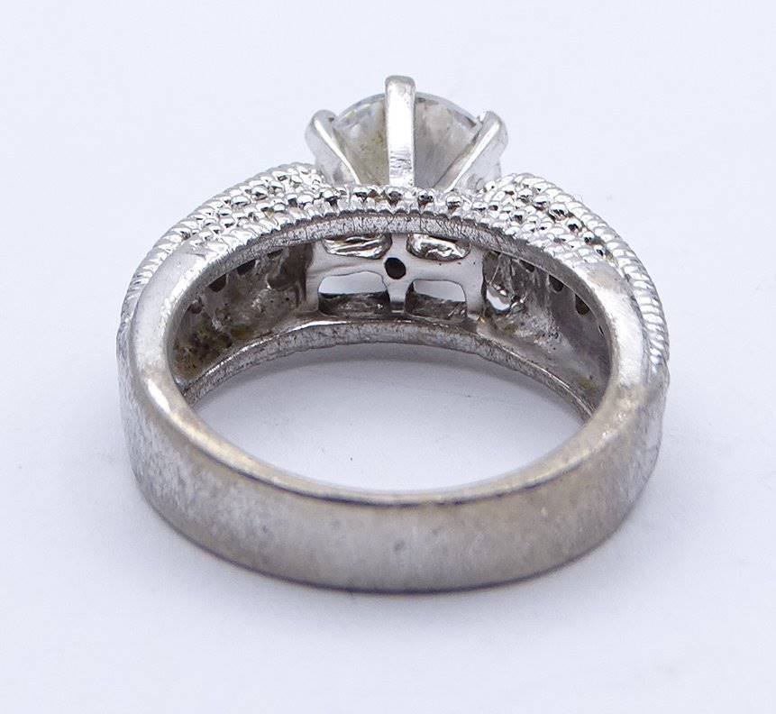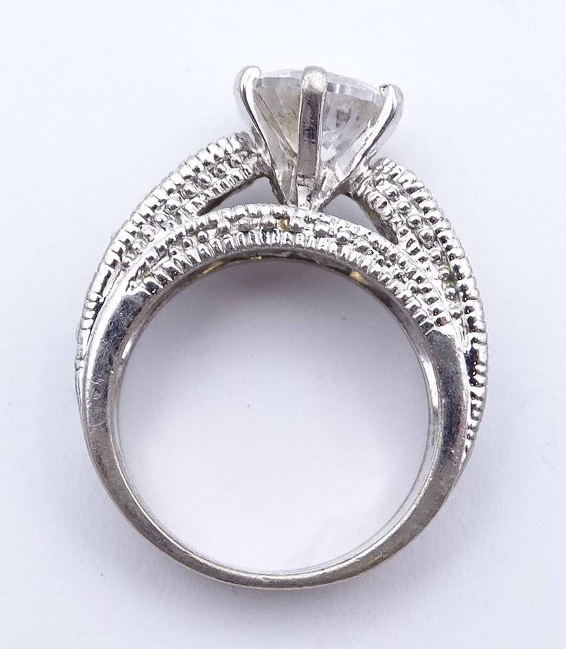 Losnummer 5013 - Silberring, 925/000, mit großem klaren Stein und weiteren kleinen Steinen, RG 54, 8,3 gr., Alters- und Tragespuren