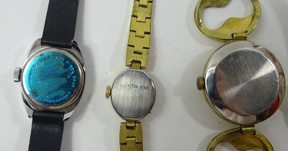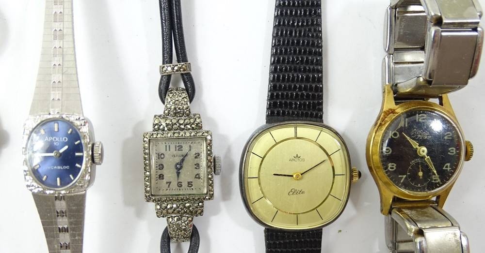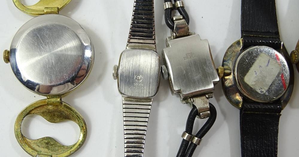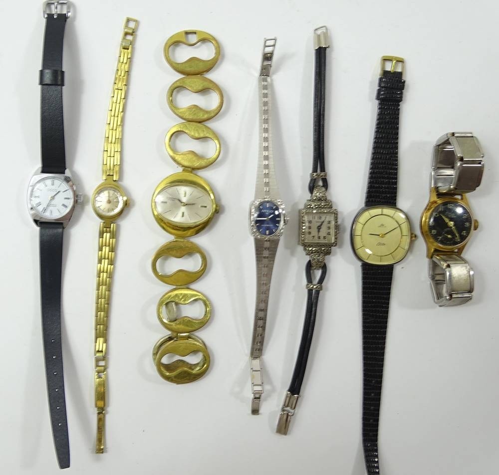 7 div. Damenuhren mit Handaufzug, u.a. Bifora, Osco, Gehäuse Ø 1,5 - 2,7 cm, Bifora-Werk steht, mit Alters- und Gebrauchsspuren [1]