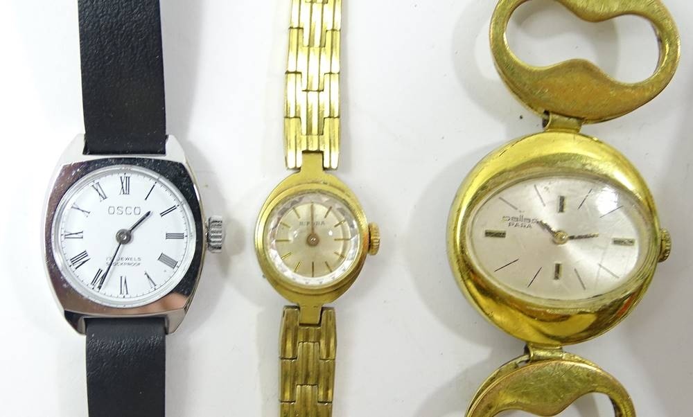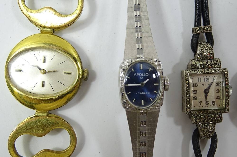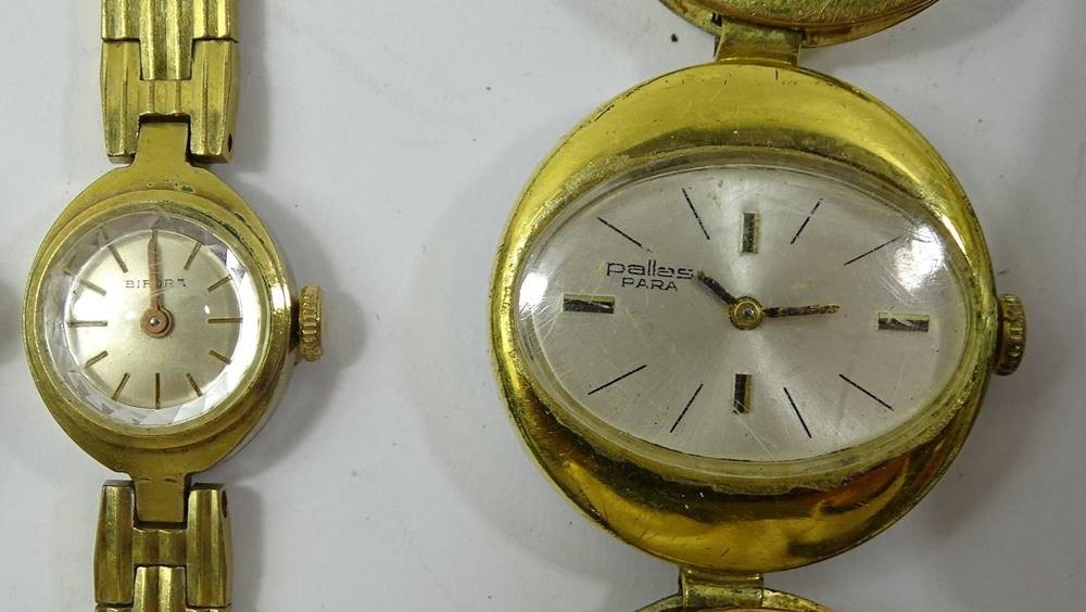 Losnummer 6081 - 7 div. Damenuhren mit Handaufzug, u.a. Bifora, Osco, Gehäuse Ø 1,5 - 2,7 cm, Bifora-Werk steht, mit Alters- und Gebrauchsspuren