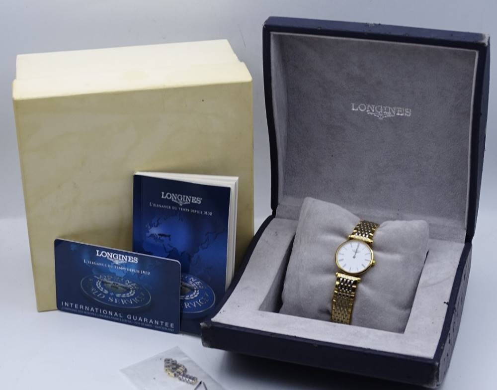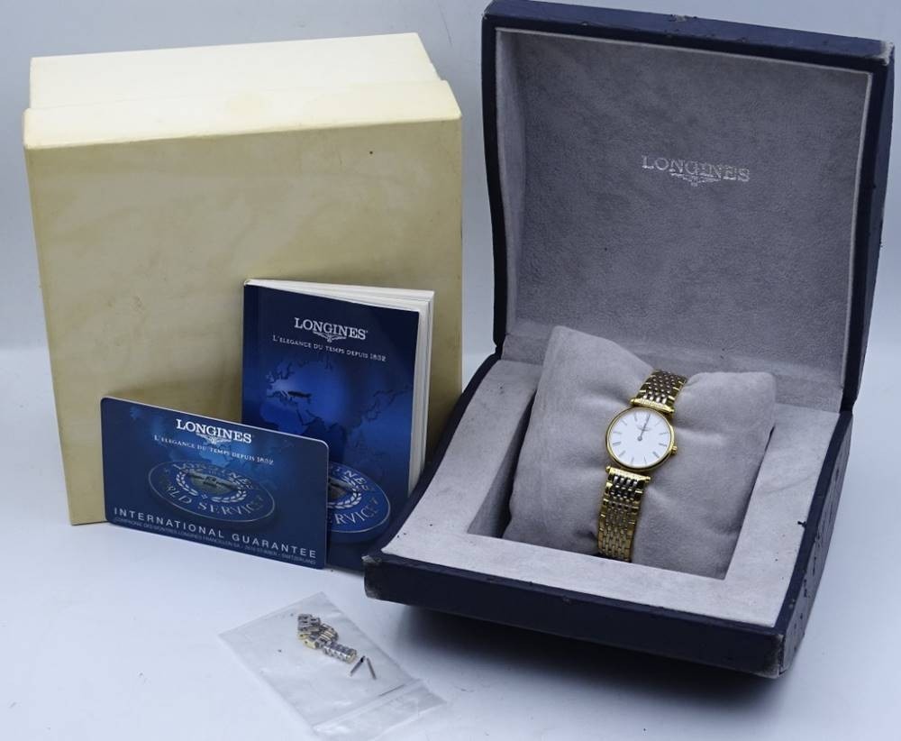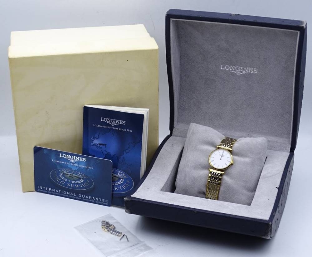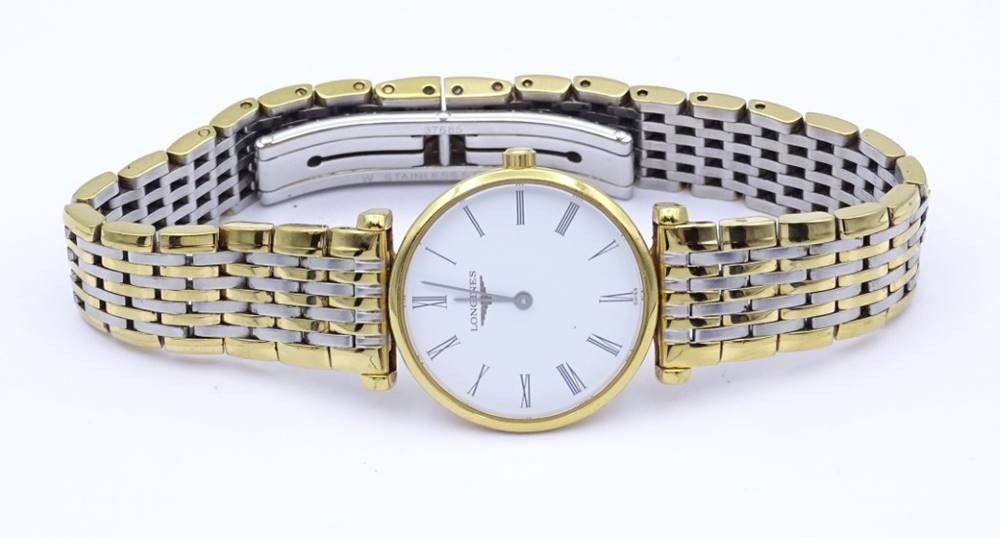 Losnummer 6046 - Damen Armbanduhr "Longines" la Grande Classique, bicolor, Quartzwerk, läuft, D. 23,7mm, Schachtel,Dokumente und Umkarton anbei