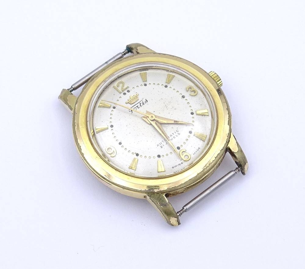 Herren Armbanduhr FORTIS, Cal. 1256, Automatikwerk, Werk läuft, D. 34,7mm, Alters- und Gebrauchsspuren