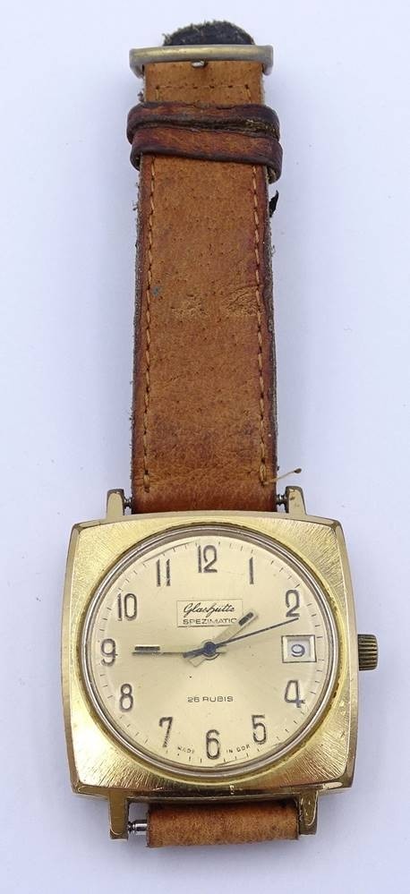 Herren Armbanduhr "Glashütte", Spezimatic, Cal. 75, Werk läuft, Gehäuse 34,5x34,5mm, Alters- und Gebrauchsspuren [1]