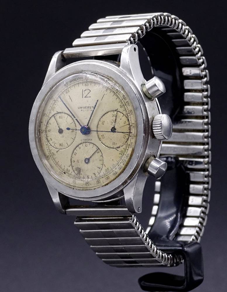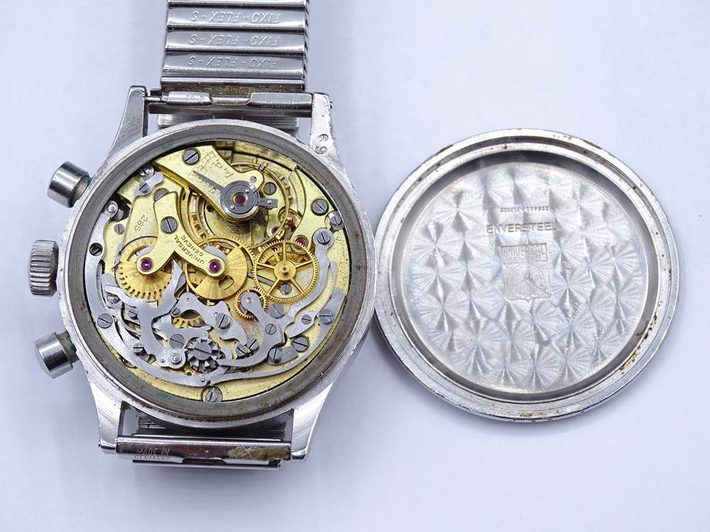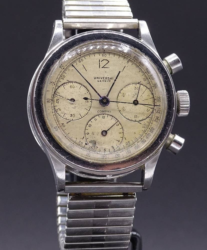 Losnummer 6016 - Herren Armbanduhr "Universal Geneve", mechanisch, Cal. 285, Werk läuft , D. 38mm,Tragespuren