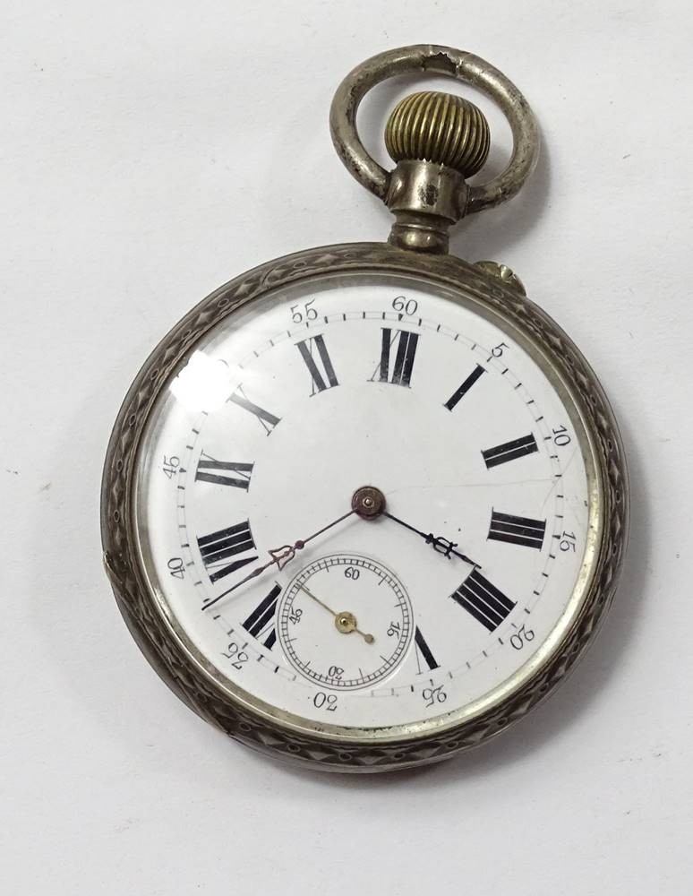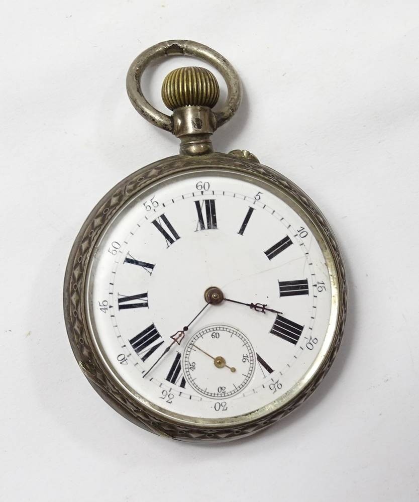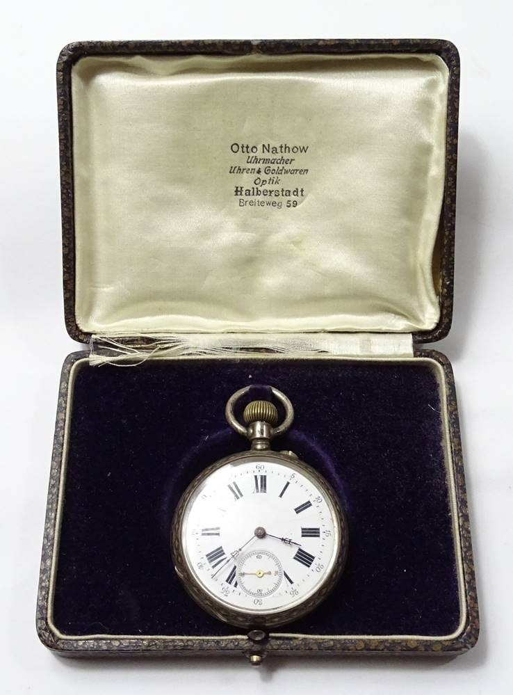 Losnummer 6037 - Herren Taschenuhr, mechanisch,Werk läuft, Silbergehäuse, D. 49mm, in Etui
