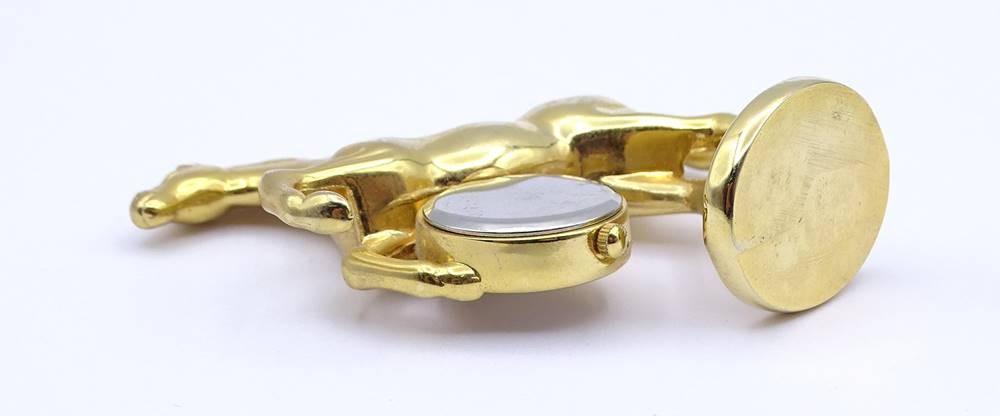 Quartzuhr in Pferdedarstellung, Messing, Quartzwerk, Funktion nicht geprüft, H. 7,0cm, [1]