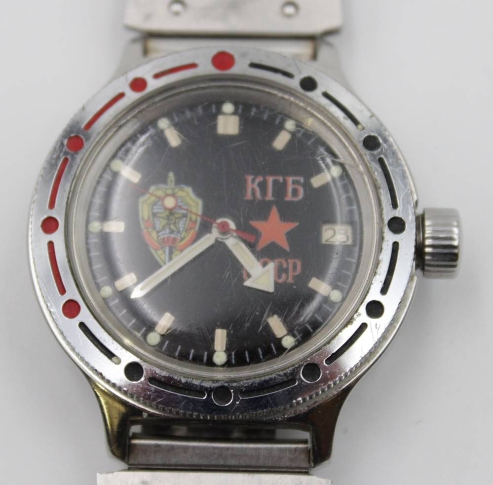 russische Armbanduhr, Automatik, Werk läuft, getragene Erhaltung, D-3,5cm. [1]