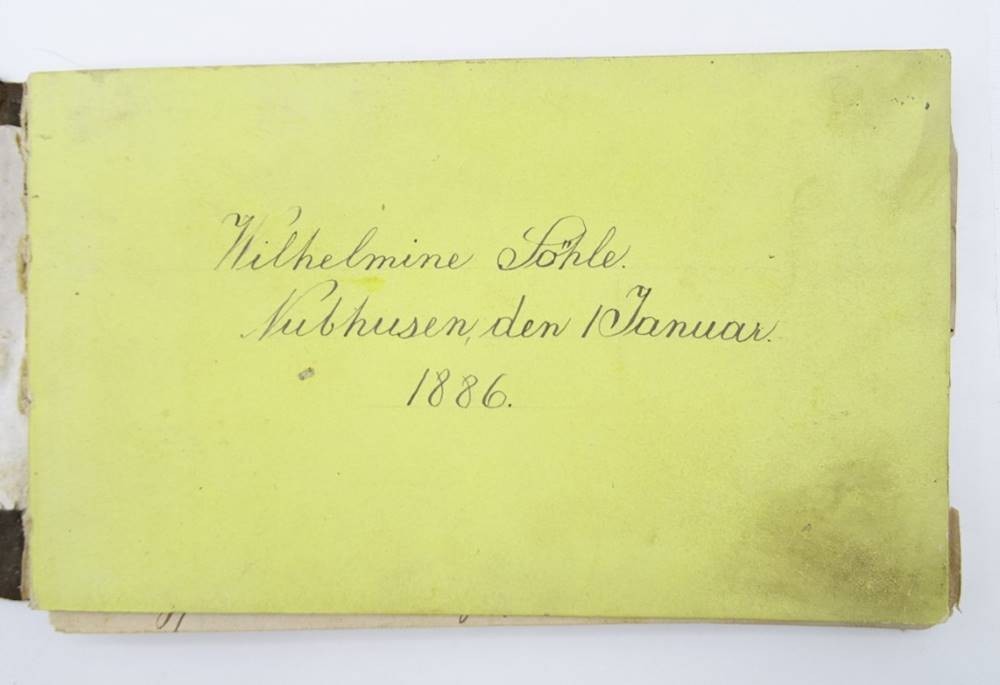 2 alte Poesiealben, 1881 und 1886, Otterndorf und Nubhusen (Osterbruch), je 17,5 x 10,8 cm und 21 x 18,5 cm, mit Altersspuren, Einbände lose, einige Seiten nicht beschrieben [1]