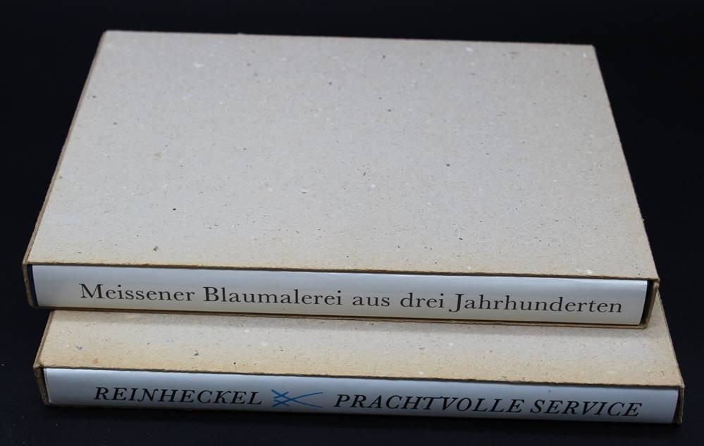 2 Bücher über Meissen , 1x Meissener Blaumalerei aus drei Jahrhunderten von 1989 sowie Prachtvolle Service aus Meissner Porzellan 1989, beide im guten Zustand und im Schutzschuber . [1]