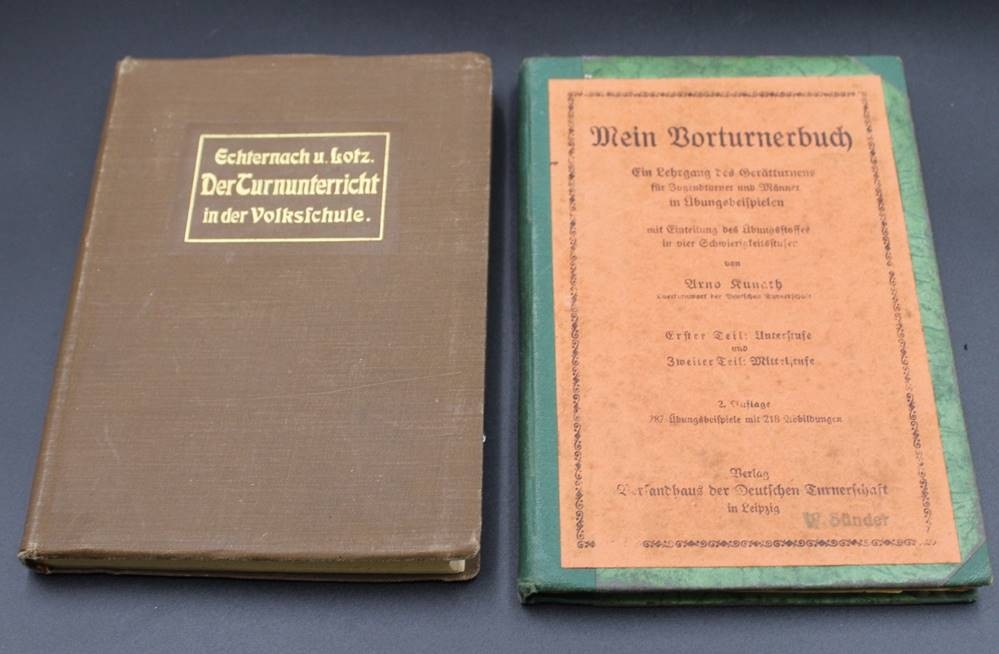 2x Literatur über Sportlehre, beide um 1912, Altersspuren. [1]