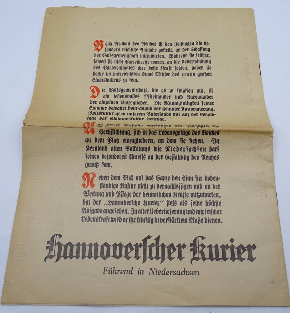 Losnummer 14000 - Hannoverischer Kurier "Das politische Bekenntnis von Nürnberg"