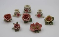 3x kl. Leuchter und 5 x Tischblüten, EN Volksstedt, 1x Blüte bestossen, ca. H-5cm.