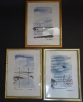 3 Aquarelle von Peter Clausen (1932-2010) "Büsum", "Eider", "Estersiel", gerahmt, hinter Glas, BG. ca. 19 x 26 cm