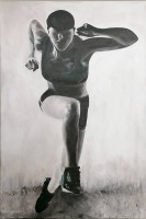 LBD Monogramm , (19)53 "Frau mit Taube" Öl/Leinen, alt gerahmt, RG 98x50 cm