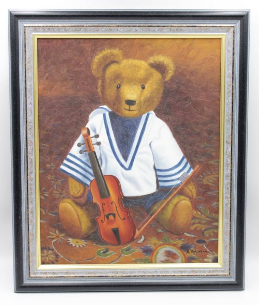 M. ???, Teddybär mit Geige, Öl/Leinwand, gerahmt, RG 61 x 51cm. [1]