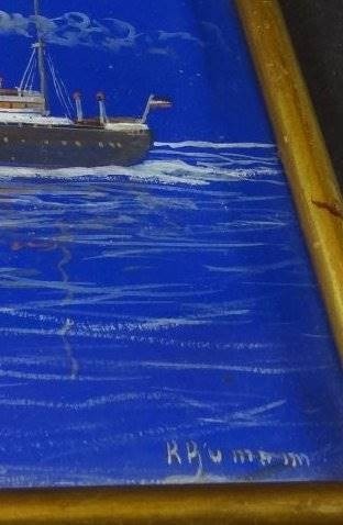 Losnummer 12002 - R. Rumann "Kombischiff Antonio Delfino" Reederei Hamburg-Süd unter Zeppelin, Aquarell, ger/Glas, RG 23x18 cm