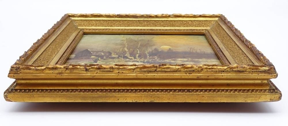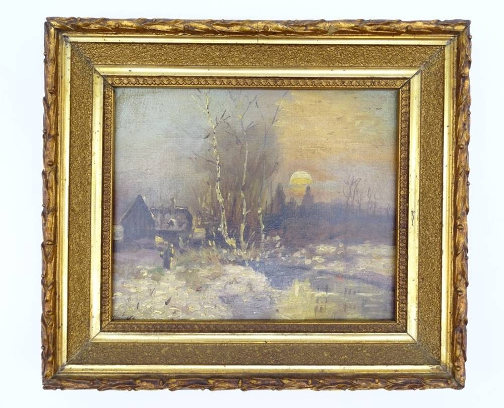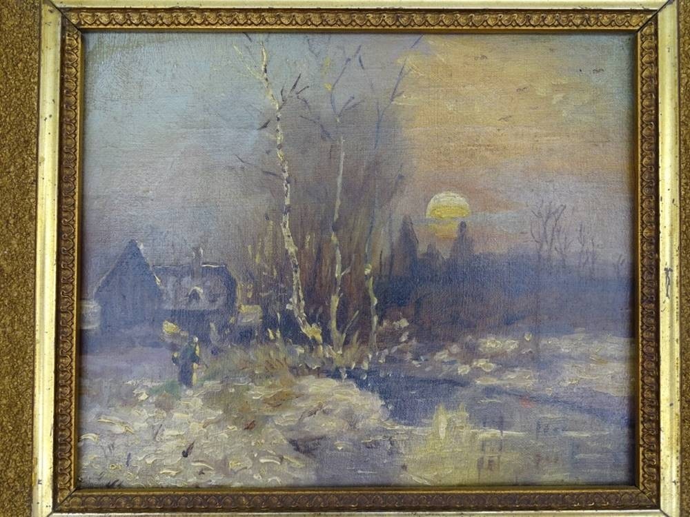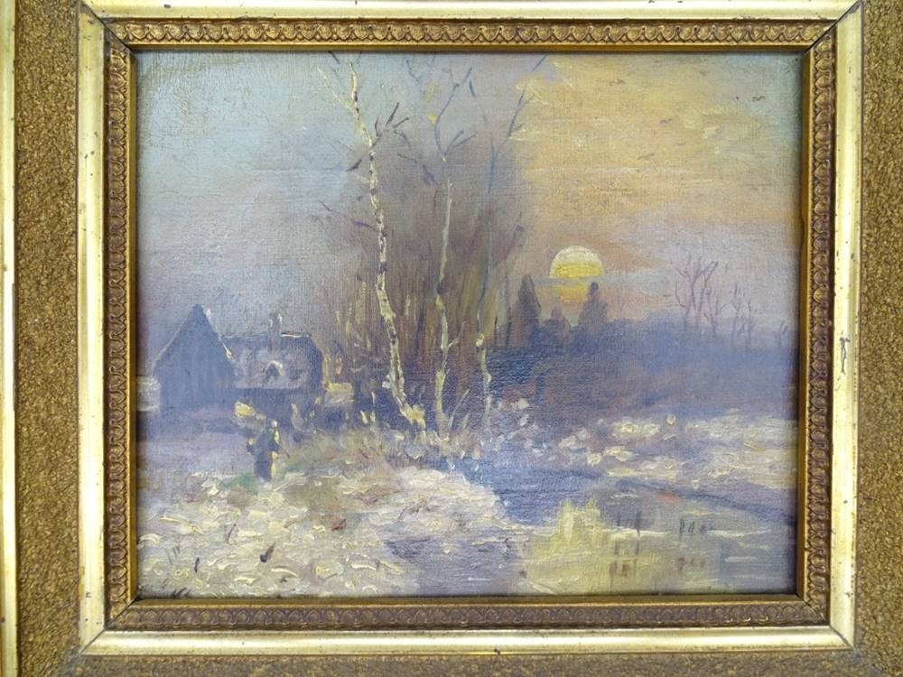 Winterlandschaft, unsigniert, Öl auf Leinwand, gerahmt, RG 20 x 22,5 cm, Rahmen mit kleinen Beschädigungen [1]