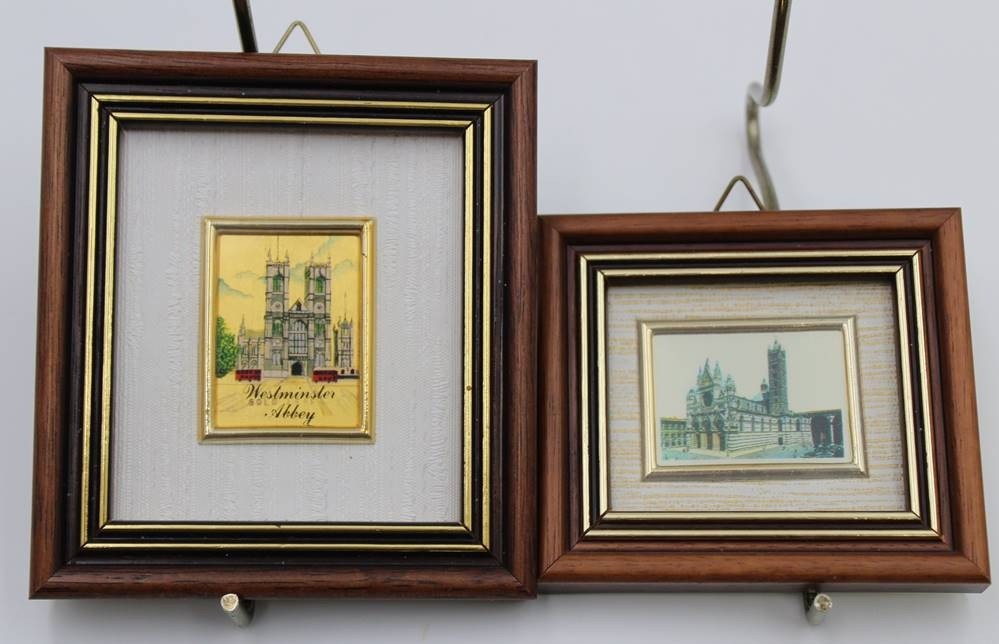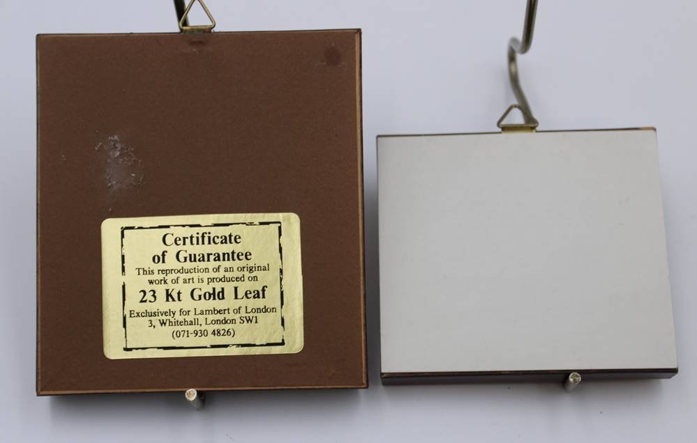 2x kl. Bilder, Goldauflage. je gerahmt, RG 10 x 9cm und 7,5 x 8cm. [1]