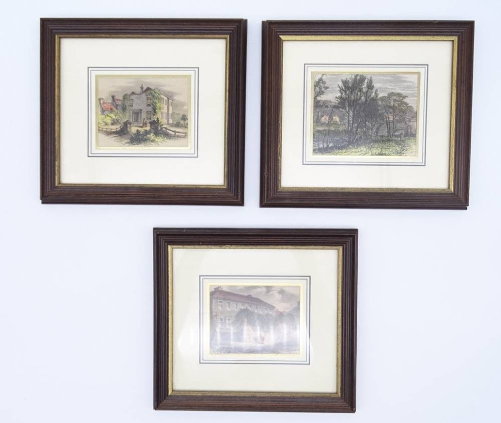 Losnummer 13001 - 3 handkolorierte Holzstiche, 1860, gerahmt, hinter Glas, RG 20 x 18 cm