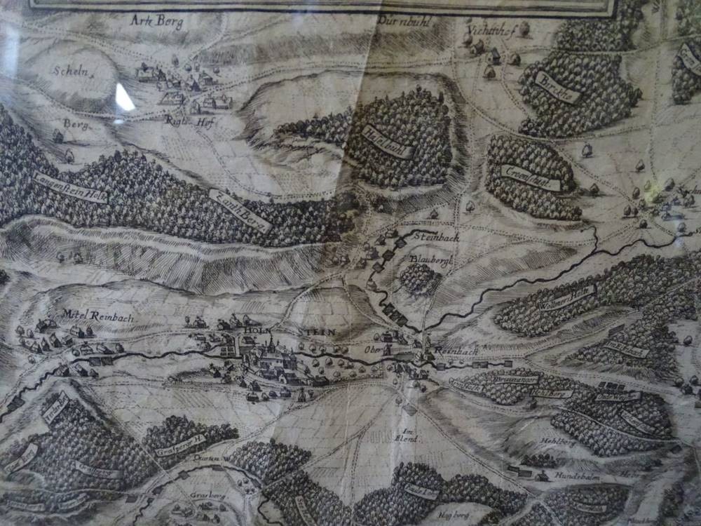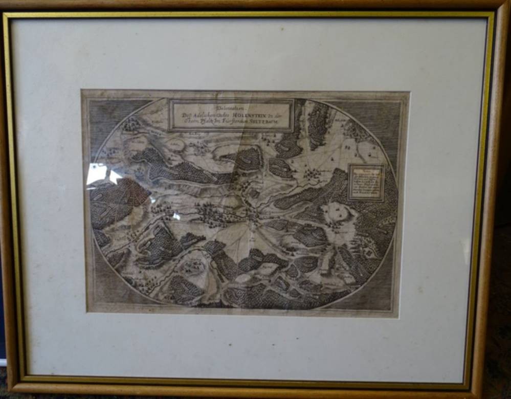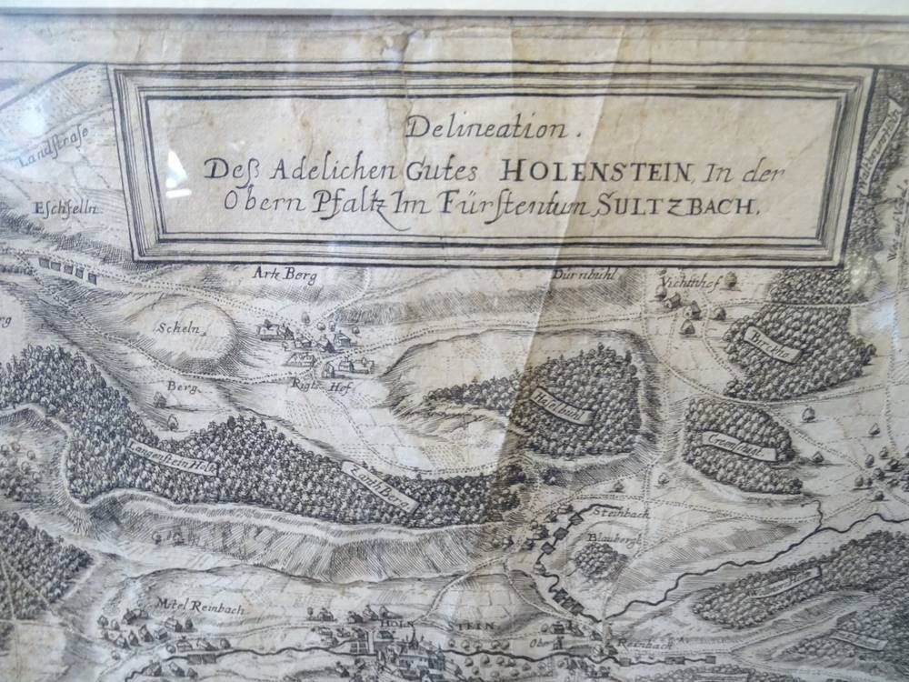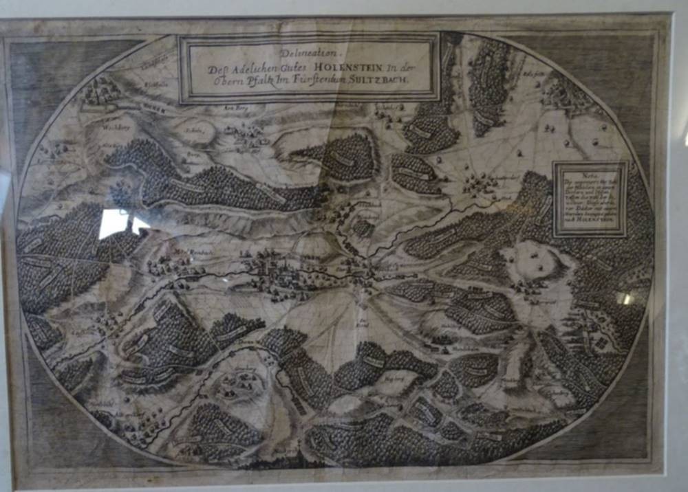 Losnummer 5029 - Karte des Gutes Holenstein um 1680, bei Neumarkt/Oberpfalz, ger/Glas, Blatt mit Knickstellen etc., RG 50x61 cm