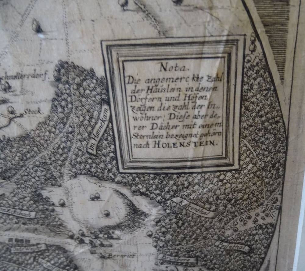 Karte des Gutes Holenstein um 1680, bei Neumarkt/Oberpfalz, ger/Glas, Blatt mit Knickstellen etc., RG 50x61 cm [1]