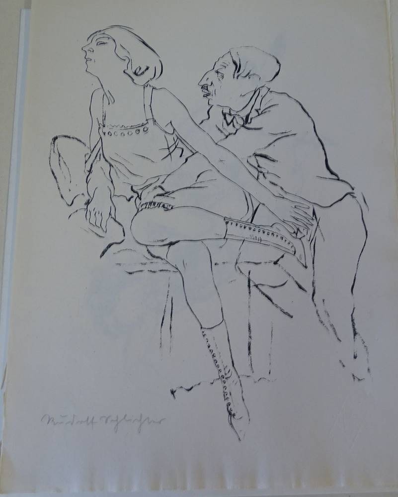 Rudolf SCHLICHTER (1890-1955) erotische Szene, Litho, BG 41x30 cm, Blindmarke Davidstern