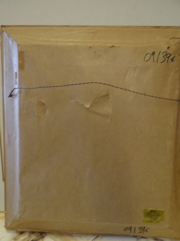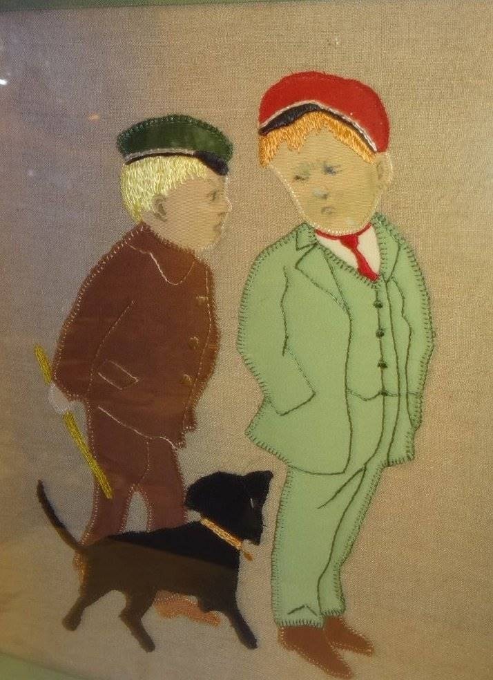 Stickbild "2 Studenten mit Hund" in Glasrahmen, 50x45 cm [1]