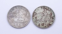 82x 1 Franken,Schweiz,1916 - 1955, in Schaukasten (2 sind über zwei Münzen gelegt,daher 82 Stück)