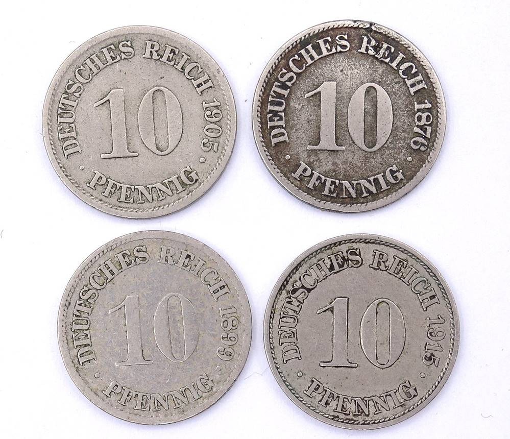 4x 10 Pfennig Deutsches Reich, 1876/1899/1905/1915 [1]
