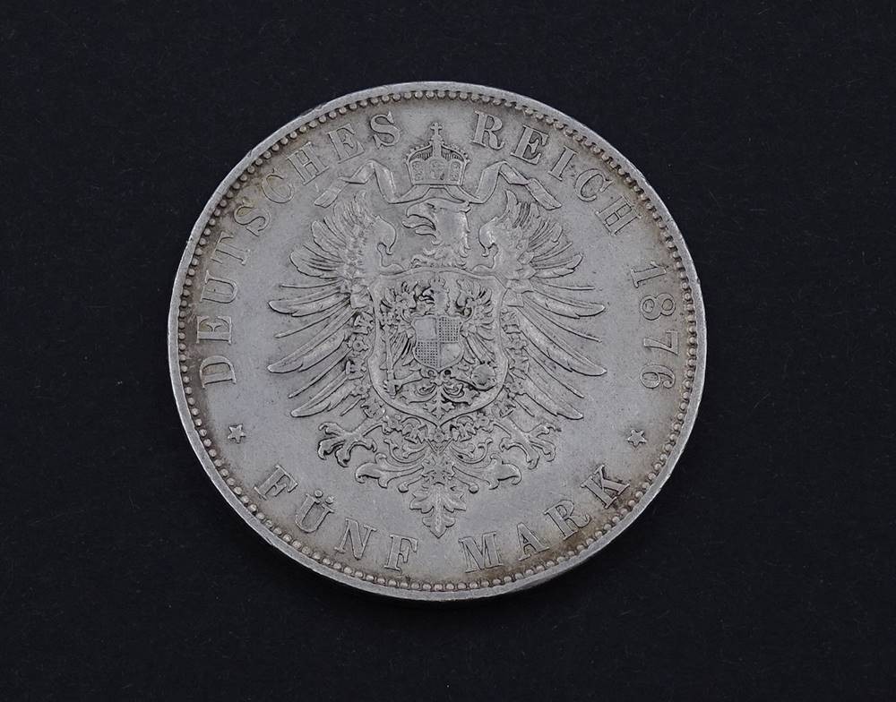 Fünf Mark 1876 Albert König von Sachsen E, 38,0mm, 37,60g. [1]