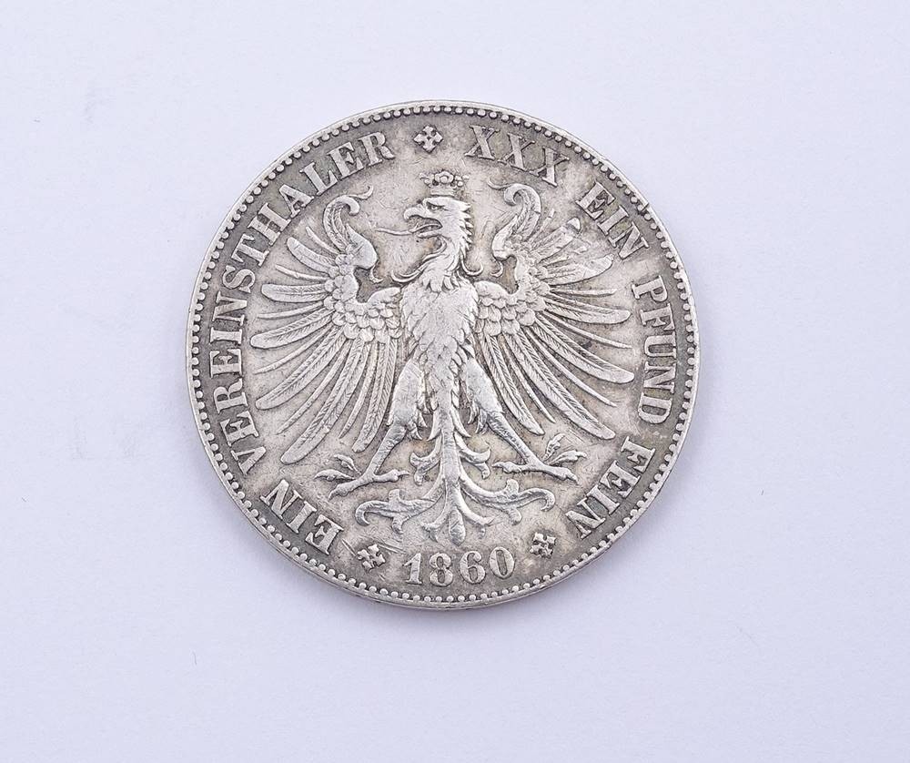 Losnummer 15020 - Vereinsthaler 1860 Freie Stadt Frankfurt , 18,34g., D. 32,9mm