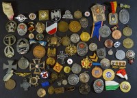 Großes Konvolut Abzeichen 1900-1980, darunter Kopien,Schützenorden,Militär etc. Alters- und Gebrauchsspuren