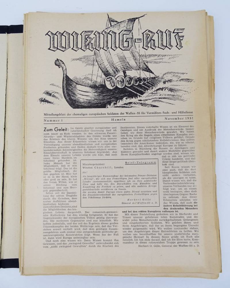 Sammelordner "Wiking-Ruf" 1952 mit 18 Ausgaben von 1951-1953, mit Altersspuren, teilweise leichte Beschädigungen, Teile aus Seiten ausgeschnitten [1]