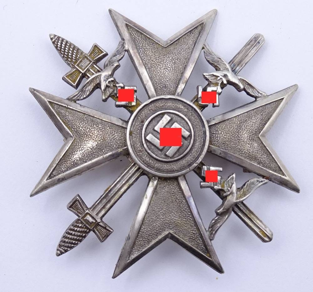 Spanienkreuz in Silber mit Schwertern, ein Adler fehlt, Original? Silber (gepr.) [1]