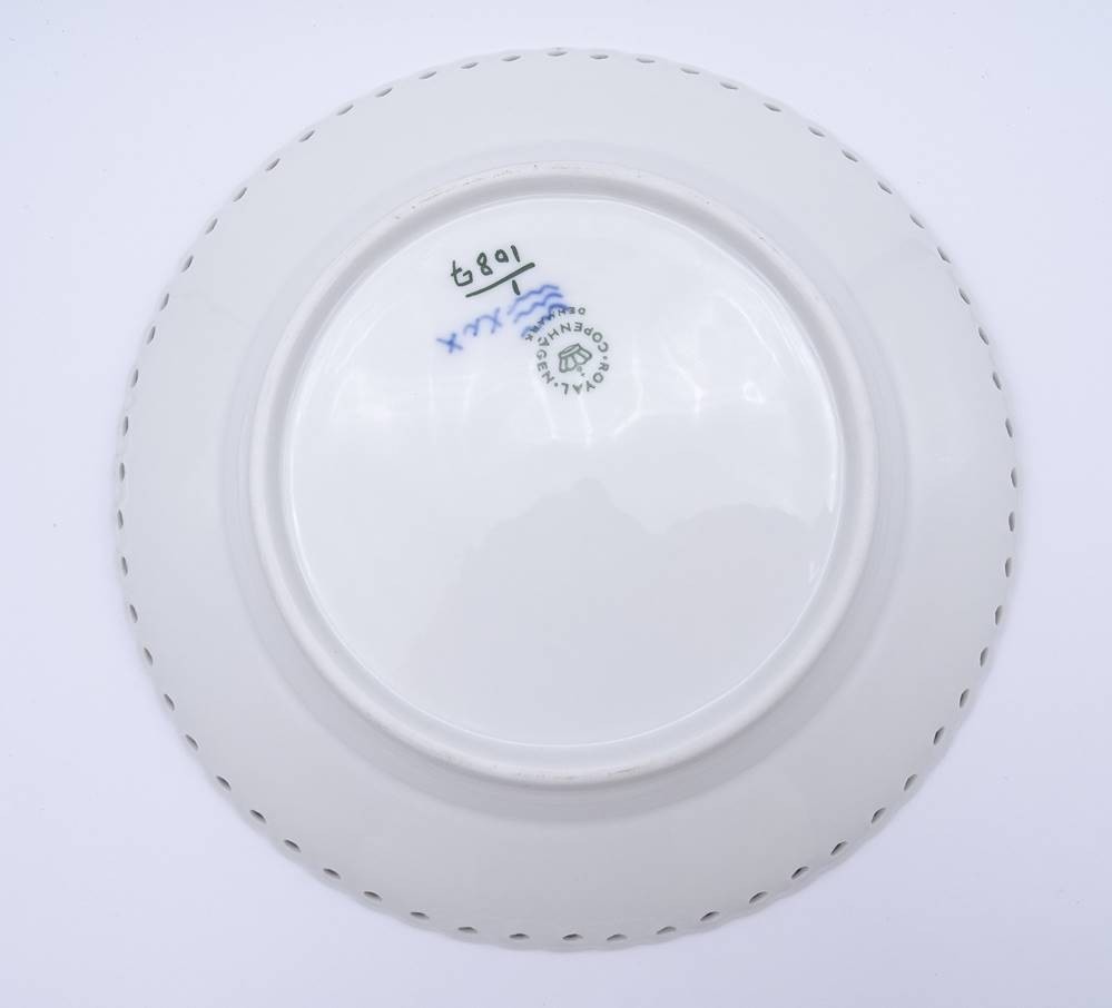 Drei Kuchenteller "Royal Copenhagen" Dekor Musselmalet Vollspitze, am Boden mit grüner Firmenmarke und blauen Wellen, D. 17,5cm, unbeschädigt [1]