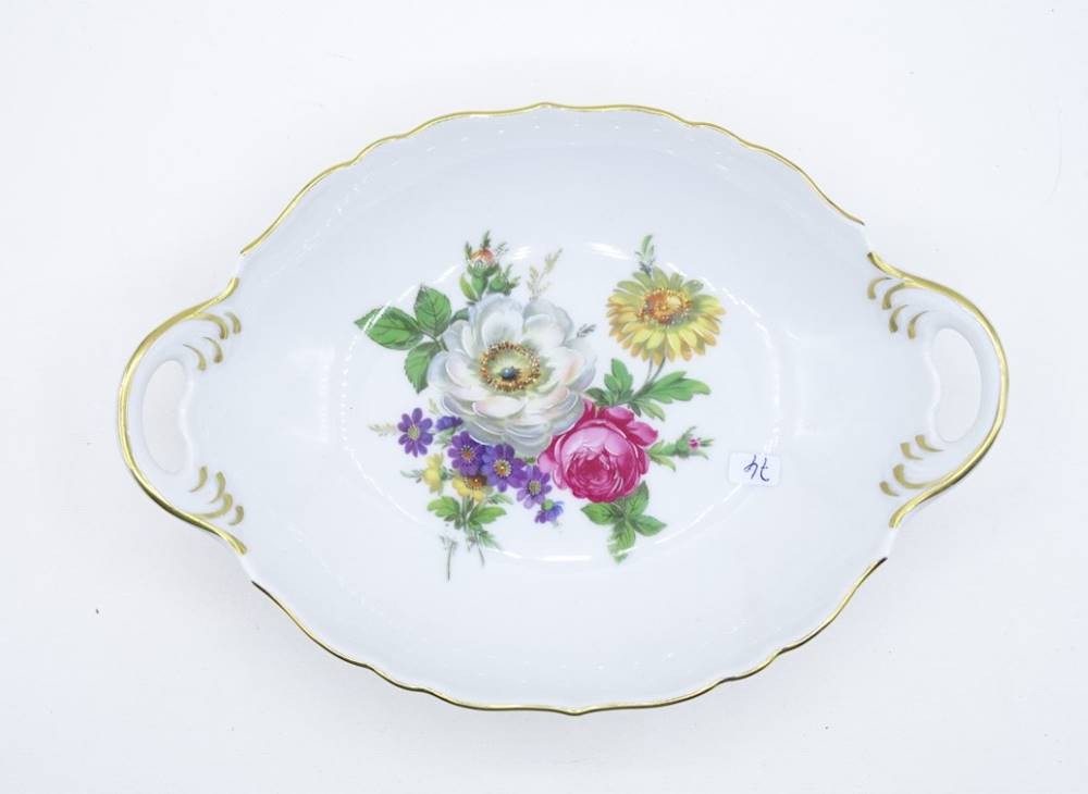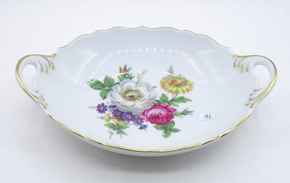 Henkelschale von Kaiser mit Blumendekor und Goldrand, 21,5 x 15 cm [1]