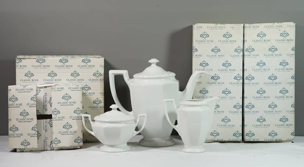 Kaffeeservice, Rosenthal , Form Maria, 21tlg, Kaffeekern und 6 kompl. Gedecke, teilw. orig. Karton, Kanne H-20,5cm Tassen H-6,5cm. [1]