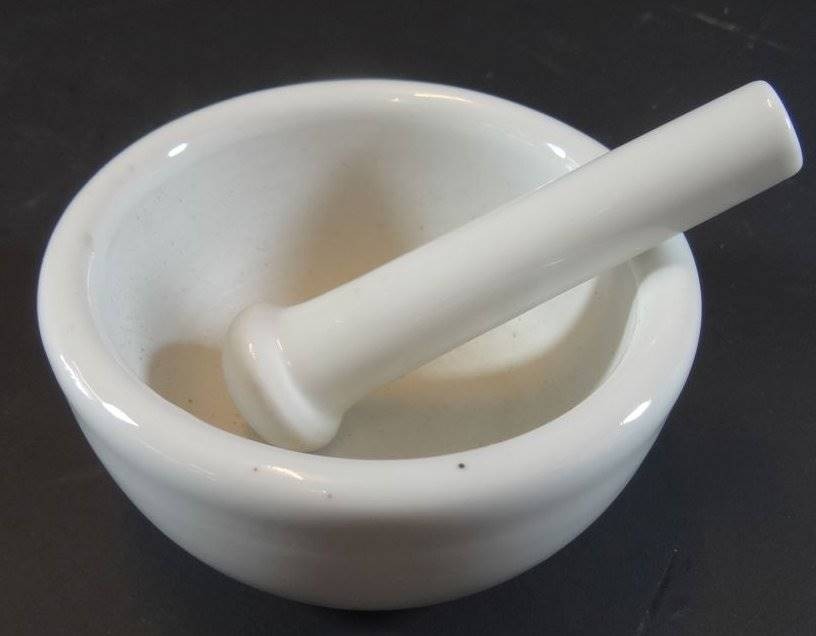 kl. Porzellanmörser mit Stößel (dieser Rosenthal), H-5 cm. D-10 cm, um 1900 [1]