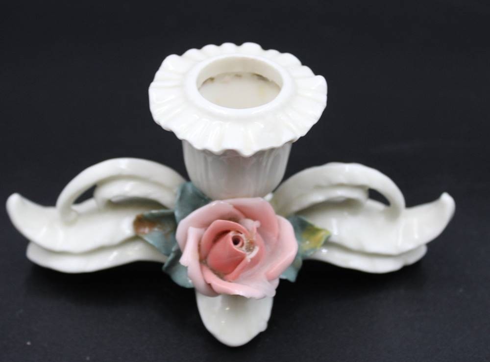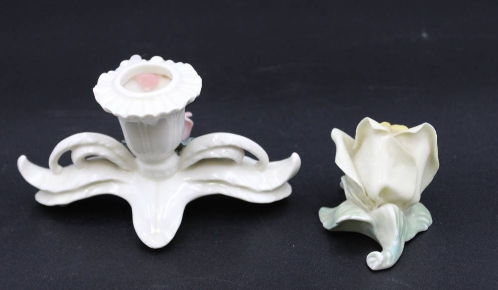 Losnummer 1192 - Leuchter und Tischblüte, ENS Volkstedt, Blüte bei Leuchter bestossen, ca. H-6,8cm.