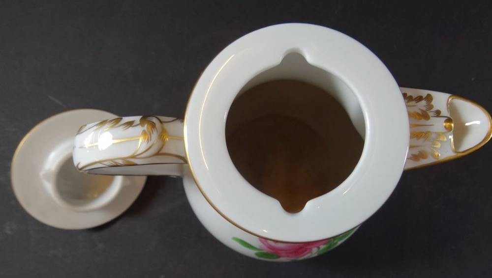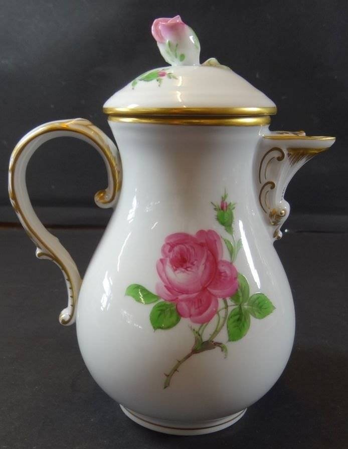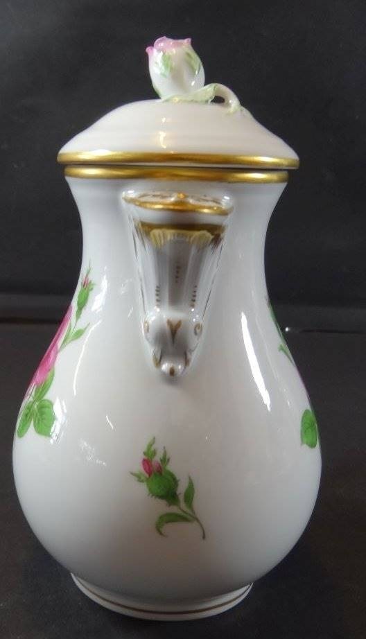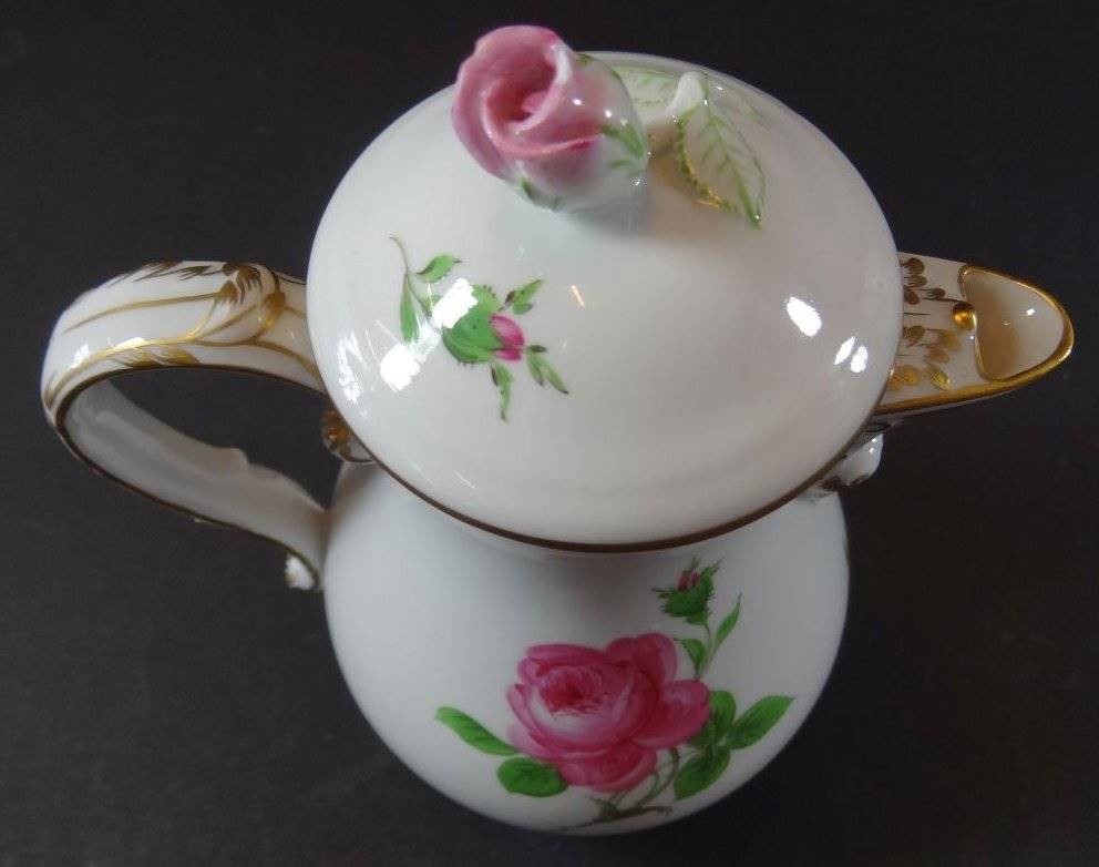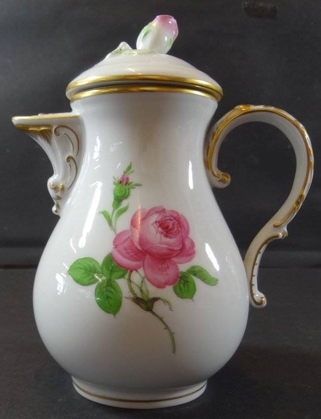 Mokka-Kanne "Meissen" Rote Rose, 2.Wahl, Deckelrose Blüte bestossen, H-17 cm
