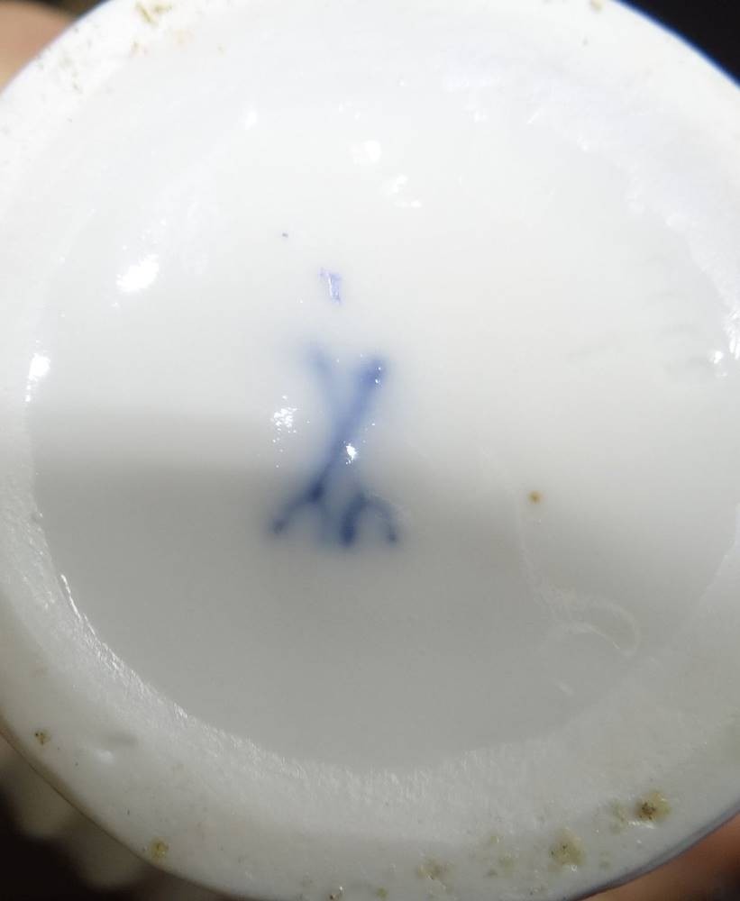 Paar Väschen, wohl um 1850, Blaumarke gekreuzte Schwerter?, beide am Rand beschädigt, H-20 cm, Blumenbemalung [1]