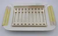 Spargelschale, Max Roessler, um 1930, Schale 1x bestossen, Einsatz altrissig, H-5,5cm B-33cm T-22,5cm.