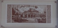 Tablett in Holzrahmen, um 1900, florales Dekor, 46,5 x 27,5cm.